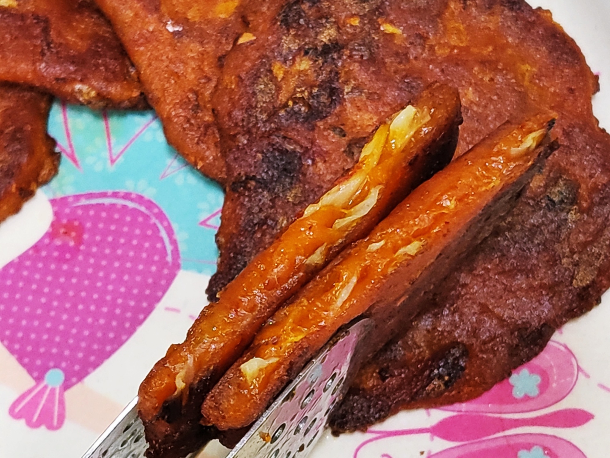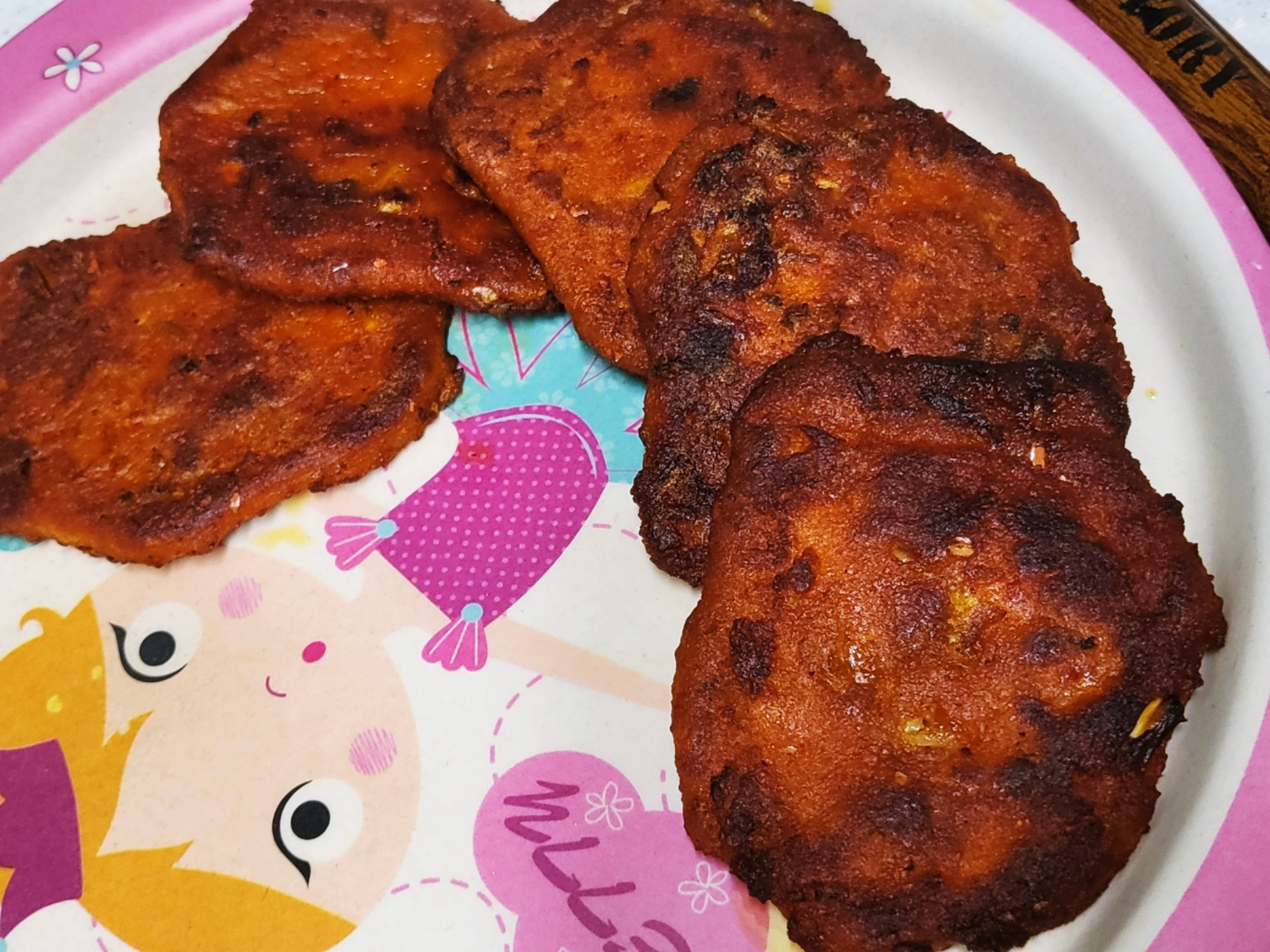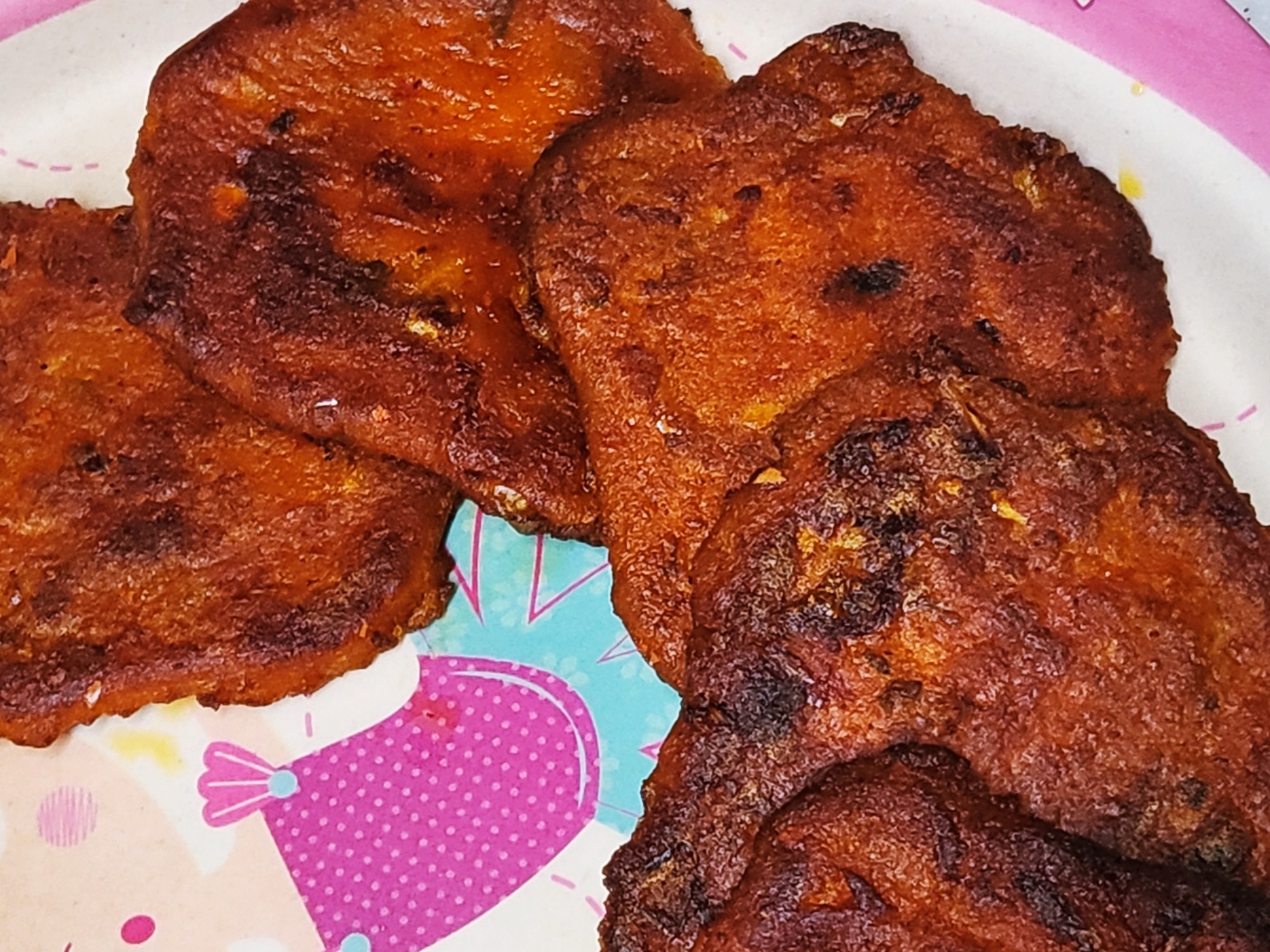 후라이팬에 다 굽고, 접시에 옮겨담았어요.