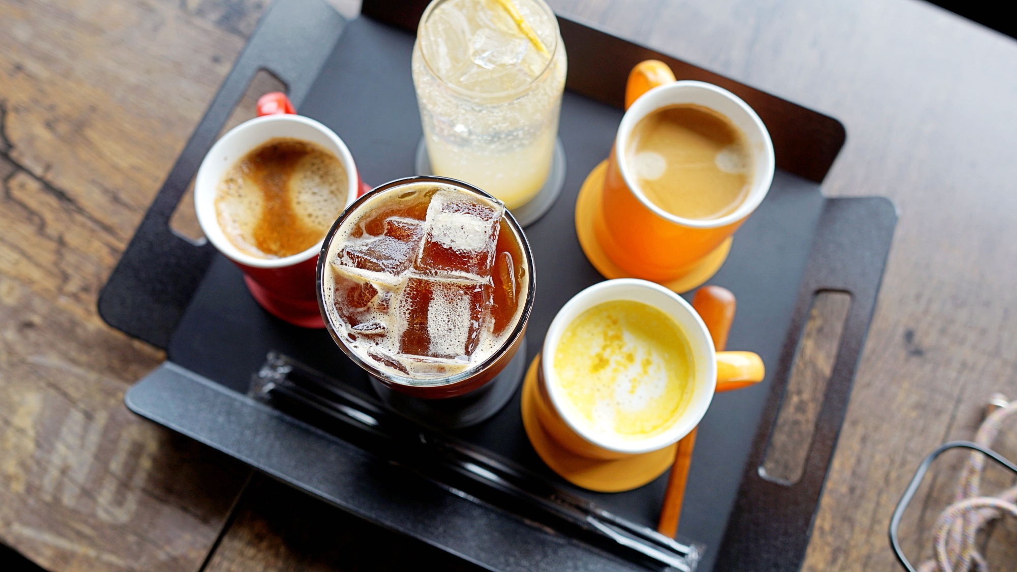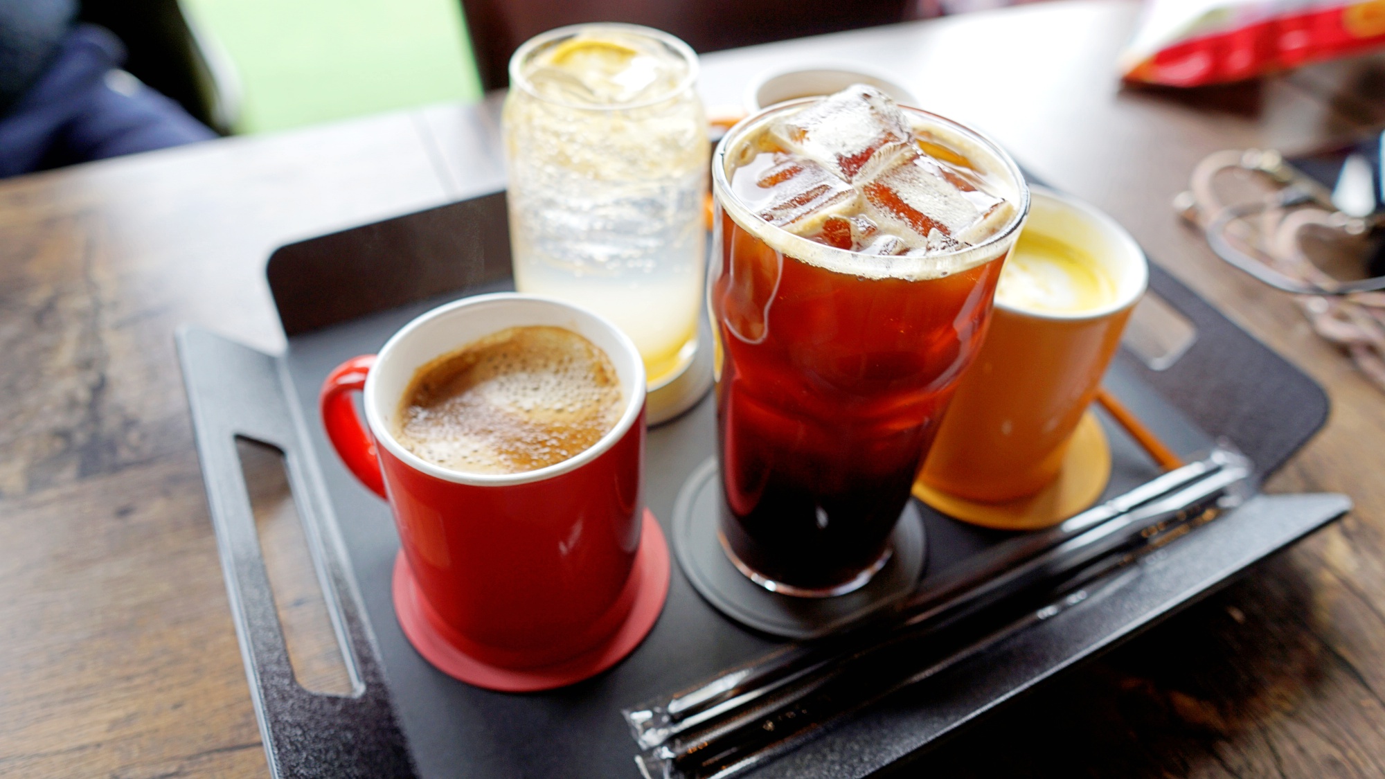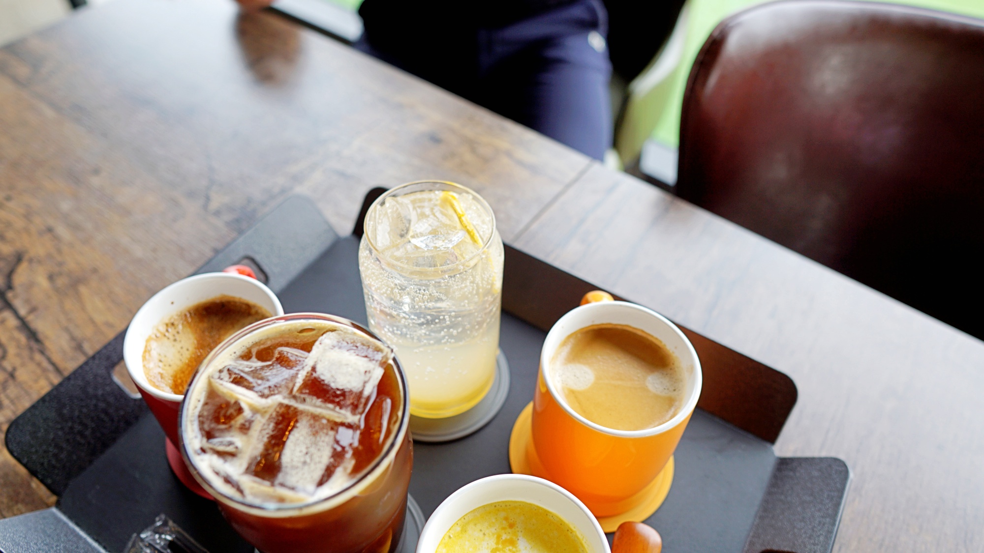 엄마, 남동생, 저는 룽고 커피로 주문했습니다.